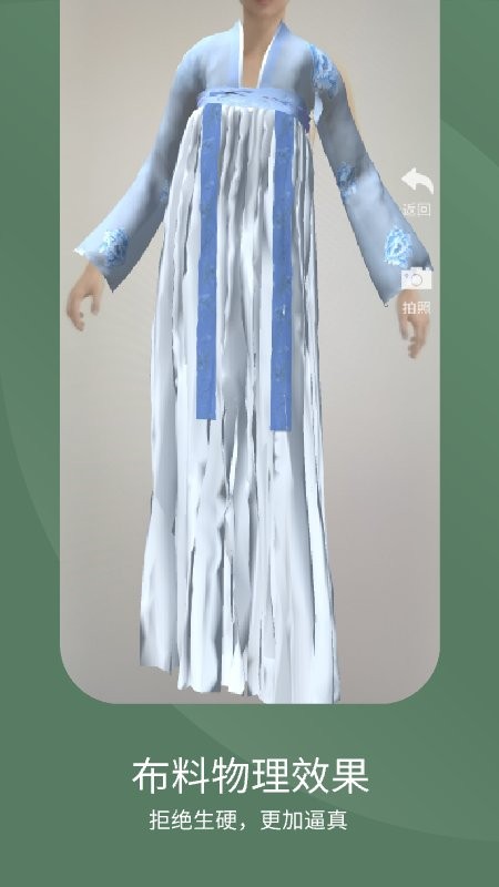 ar试衣是一款功能非常好玩,能够给用户进行拍摄达到全新试衣效果的手机软件,可以姿态控制,更多的操作模式,可以让我们快速的使用,让我们看到自己穿衣服的样子,增强试衣服的体验,界面干净简洁,布料物理效果也能在线观看,非常的逼真,让大家可以随时上线体验。