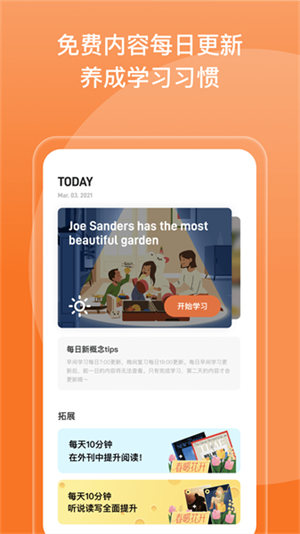 百词斩新概念app是百词斩旗下最新的一款新概念英语学习app,该软件可以帮助英语薄弱的用户全方位解决英语学习的各个环节,通过课前预习、课文带读、生词卡片、录音检测等多维度记忆方式,帮助广大新概念英语学习者轻松快乐高效背单词!其中最出色的当然还要归属于各个环节的合理安排,在百词斩新概念app中,课前预习可以先让用户对今日课程有一个简单的了解,然后再跟读图文并茂且具有同步译文的精选课文来加深印象。