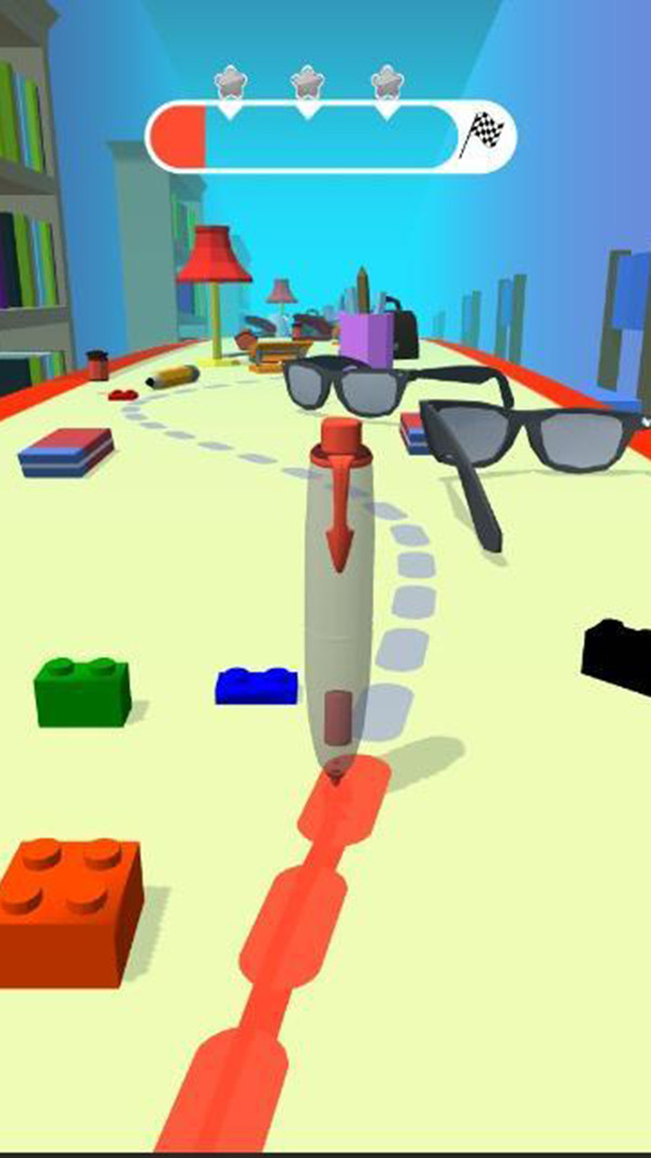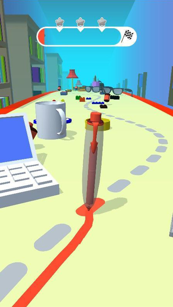 控制手中的笔进行游戏,躲避关卡中的障碍物,顺利到达终点;