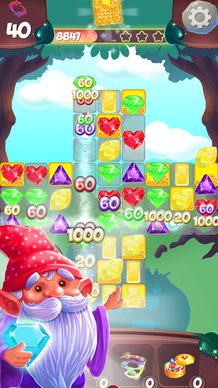 1. 游戏目标:玩家的主要目标是消除尽可能多的宝石和钻石,以获得高分。通过消除连续的三个或更多相同的宝石,可以触发连锁反应,获得更高的分数。