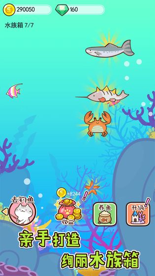2、可以将所有钓来的鱼放到水族箱当中,打造华丽缤纷的水族世界。