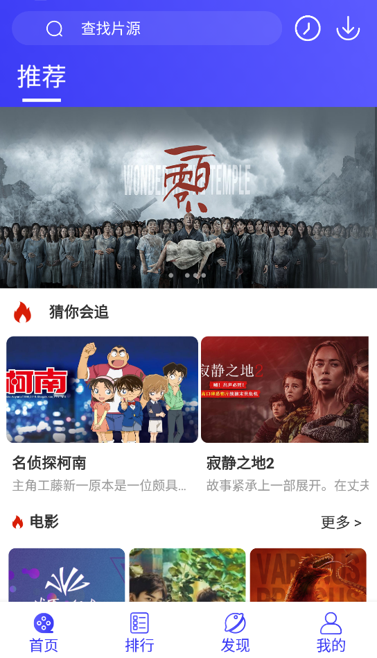 资源丰富:超全的影视库,可观影看剧追番看电视直播,不用付费,简单便捷;