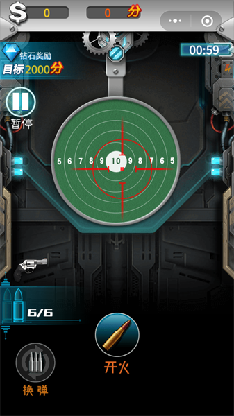 2、射击玩法很简单,就是尽量找准靶子的中心,点击开火按钮,就可以完成射击内容了。