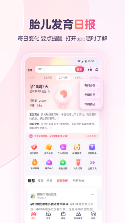 4. 社区互动:用户可以在该软件的社区中与其他用户交流经验、分享心得,缓解孕产育过程中的压力。