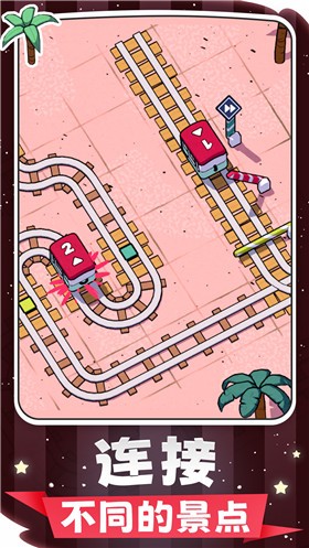 2,一路向前,没有障碍,不要太困难,太有趣,正确利用铁路障碍延误火车,玩家将连接和切断不同景点之间的铁路,然后继续冒险。