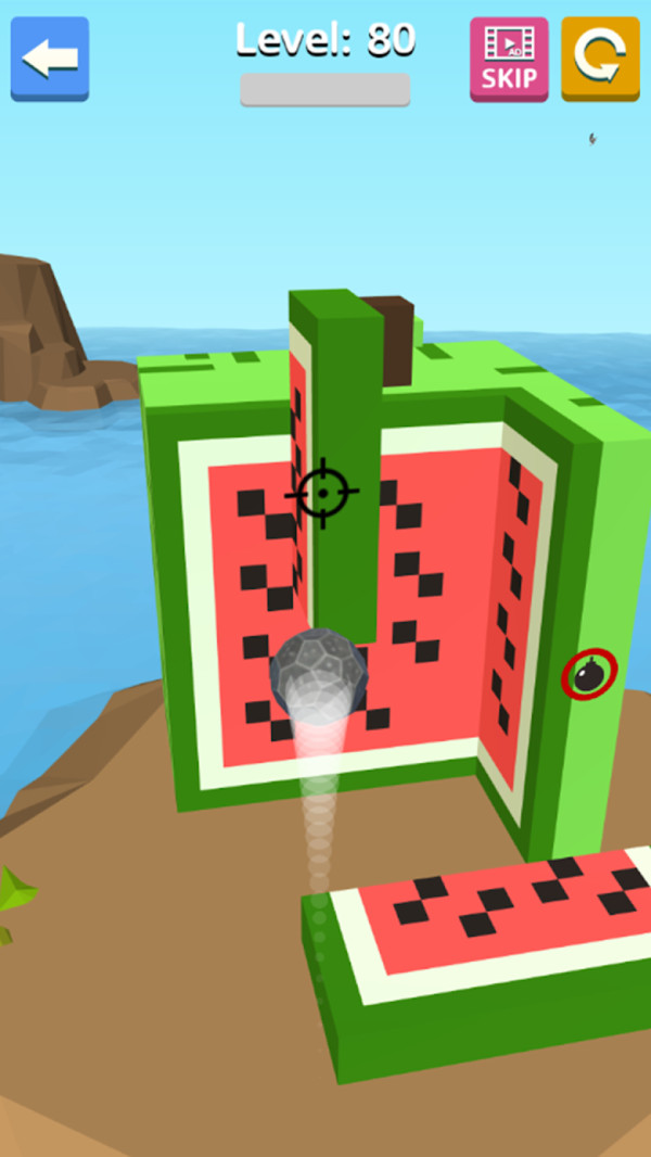 2、关卡众多任你选择,各种各样的方块模型任你摧毁,如果你摧毁的更多方块,你的得分就会越高;