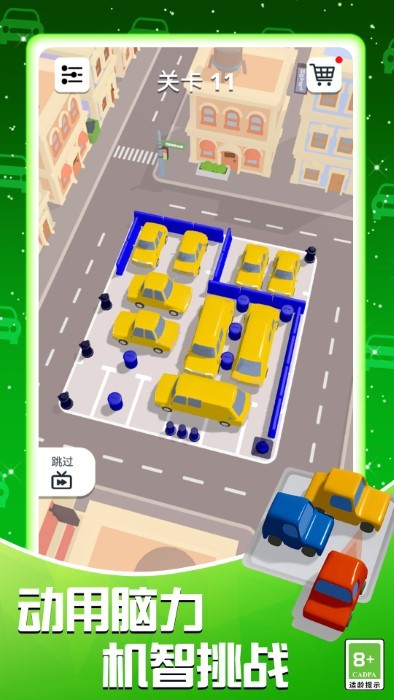 2、玩家需要从杂乱无章的停车场内开出所有的汽车,各种的技巧也可以帮助玩家更好的开出汽车。