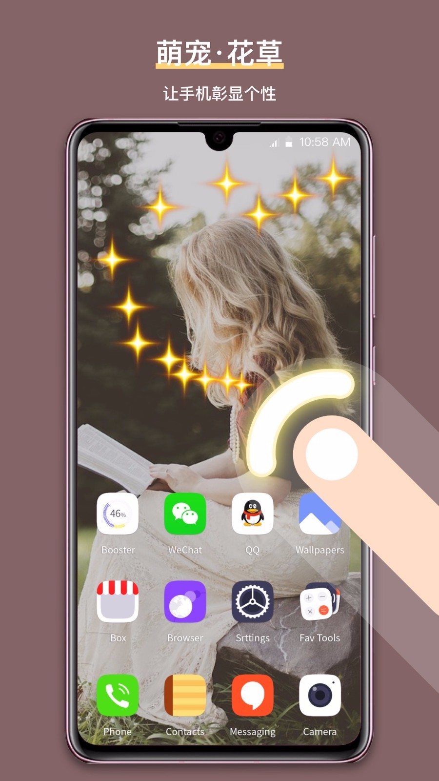 魔法手指是一款十分好用的手机桌面美化软件,提供了超多的点触特效,可以为用户提供快速的桌面美化,这样您的手机就会更有个性了,提升您的手机使用体验;用户可以在app中快速的定制个性的快捷操作,只要您使用对应的手势以后,就可以让自己的手机自动的呈现个性的图案、文字内容。快来试试吧!!!