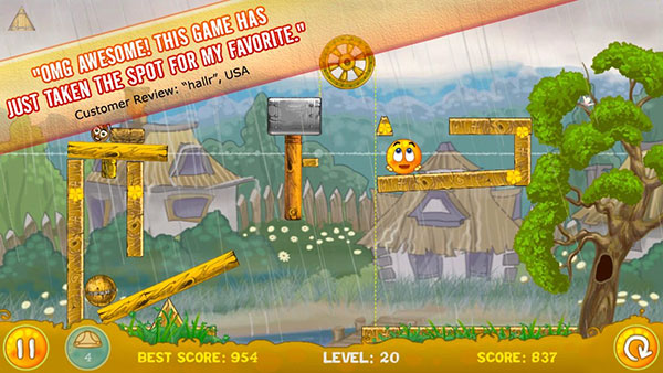 保护橙子是一款非常有趣的关于物理类型的益智解谜游戏,游戏结合了一些物理知识,玩家在解谜的过程中十分具有挑战性,在不断解锁不一样的时空的过程中体验到游戏的快感,这款游戏中玩家的主要任务就是保护橙子,利用一些滚球,炸弹,木箱等道具,能帮助橘子顺利的躲避酸雨的侵袭,顺利安全的闯关。