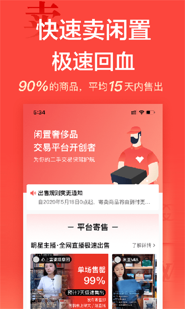 自助出售:自助拍照发布上架,售出后快递至平台鉴定,上下架更自由!