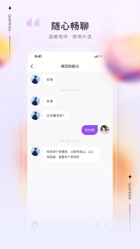 4. 自由沟通:独特的聊天功能,支持文字、语音、图片、视频等多种方式交流,让你与心仪的人沟通无障碍。