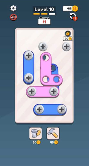 3. 在规定的时间内完成所有螺丝钉的拧入,即可进入下一关。