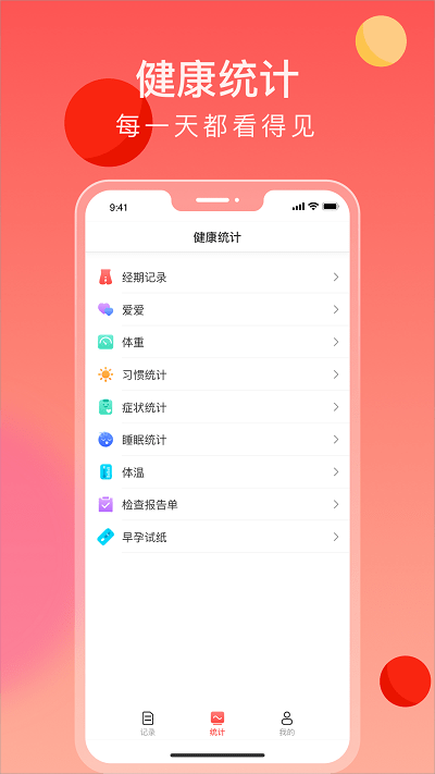 女性健康管理- 可实时记录每天的心情、体温、体重、症状、习惯、检查报告、睡眠