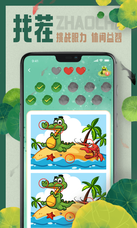 如果你喜欢休闲类游戏,喜欢挑战自己的眼力和观察能力,那么《考眼力找茬》绝对是你不可错过的游戏。游戏的可玩性非常高,画面简洁清晰,操作简单易上手,音效轻松愉悦。同时,游戏支持多种社交平台分享,可以与好友一起挑战最高分数,也可以独自挑战极限难度。最重要的是,游戏免费下载,无需任何内购,没有任何广告干扰,让你可以完全沉浸在游戏的世界中。赶快下载《考眼力找茬》,一起来挑战自己的眼力吧!