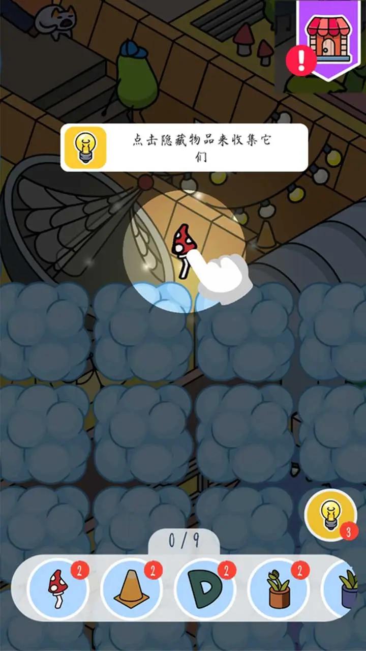 2、每个游戏场景中都有各种隐藏的物品等着你来寻找,只有找到他们才能完成任务。