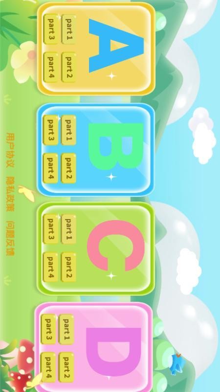 2. 进入学习界面后,孩子们可以选择自己想要学习的字母,并查看相应的字母卡片、字母动画和字母游戏等。