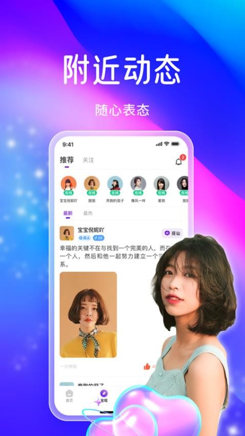3. 浏览推荐用户:在首页浏览推荐的用户列表,可以通过滑动、点赞、评论等方式与感兴趣的人互动。
