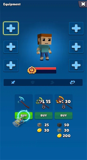 像素方块风格的冒险手游,游戏画风以及基本的玩法类似《我的世界》,就是收集资源,冒险打怪,获得奖励,购买武器装备,然后再去更级别的地图冒险,从而获得更多的奖励,如此循环,虽然简单,但确实很耐玩!