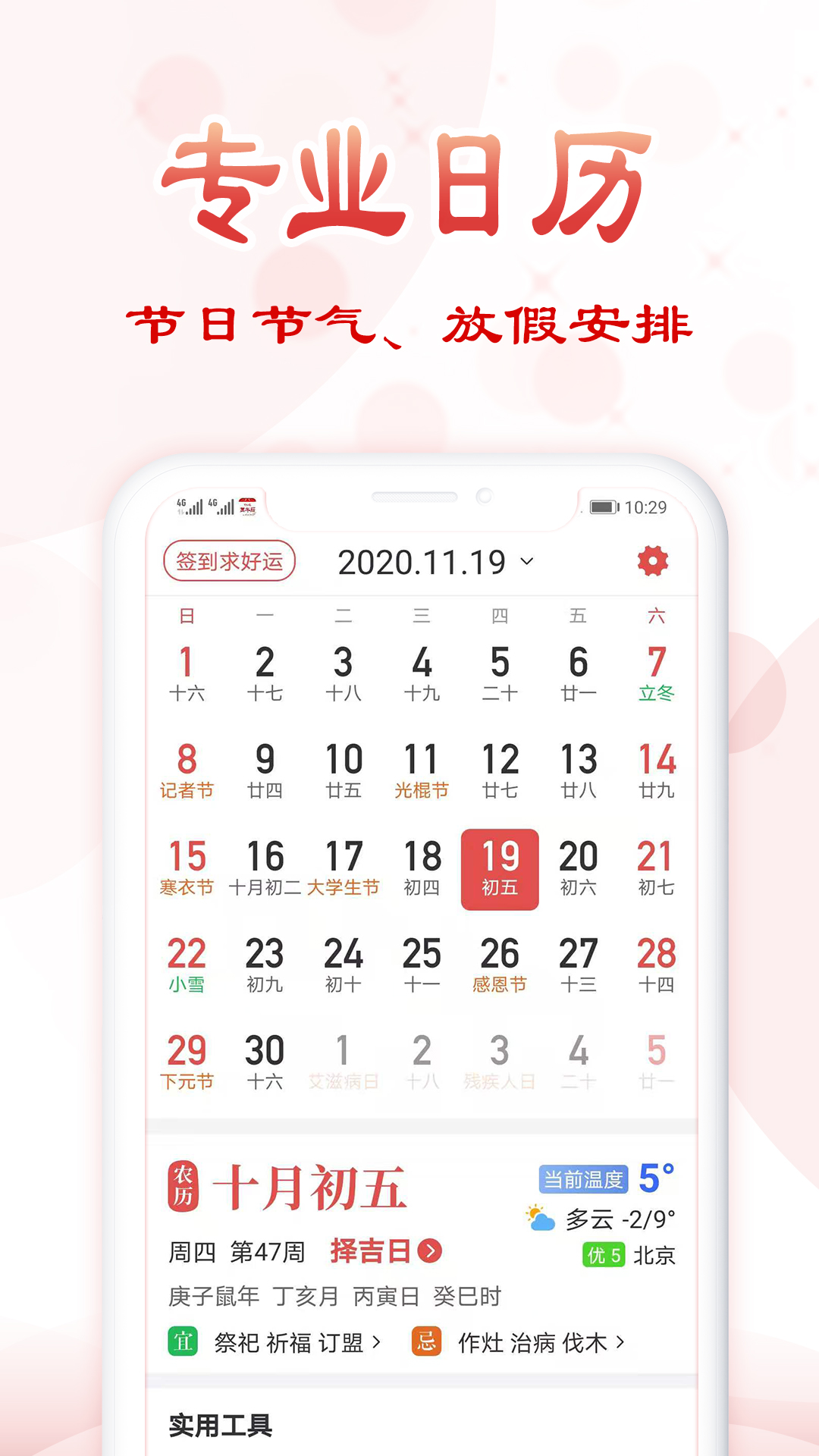 如意万年历是一款功能强大的日历软件,它可以帮助用户轻松管理日程、安排事务,并提供了丰富的节日和纪念日提醒功能。最新版如意万年历在界面设计、用户体验和功能实现上都有了很大的提升。
