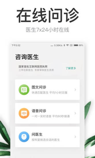2. 在线咨询:选择合适的医生进行在线咨询,支持多种咨询方式。