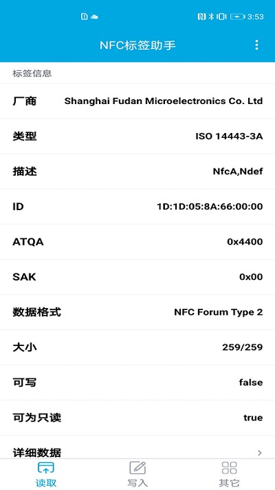 非常实用的手机nfc类软件,软件中通过读取标签,获取标签的信息展示给用户,在这里用户可以操作标签数据内容,写入需要的数据,满足用户的多方面使用要求!