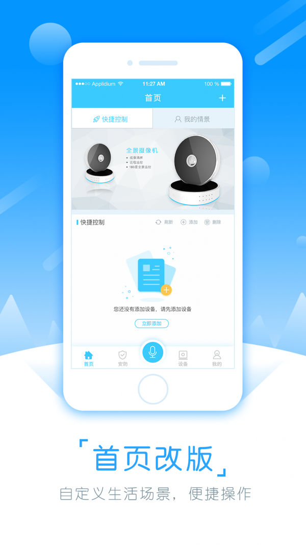 全景视频监控摄像头,全方位无死角监控,即使人不在家中,也能随时知道家中状况;可视对讲门铃,让客人等待开门的时间也能和你无缝沟通。