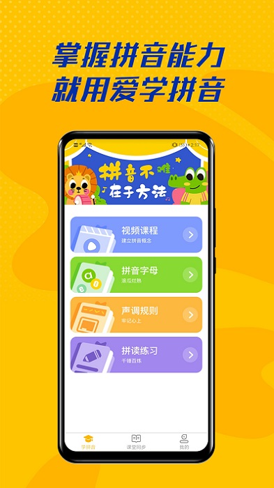 爱学拼音是一款专为儿童设计的拼音学习应用,旨在帮助孩子们快速掌握拼音知识,提高拼音认读和拼写能力。该软件采用生动有趣的游戏和互动方式,激发孩子们的学习兴趣和积极性,让他们在轻松愉快的氛围中快乐学习。