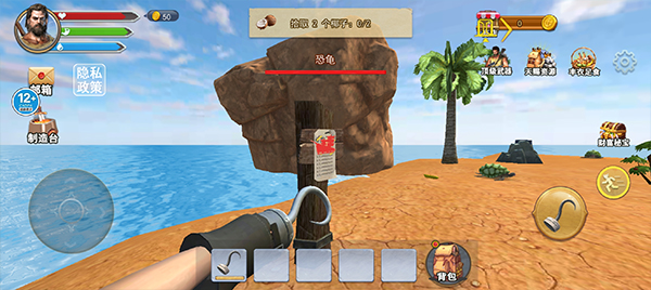 1. 探索资源:玩家需要在荒岛上探索资源,包括食物、木材、石头、金属等,同时还需要注意各种危险,如野兽、自然灾害等。