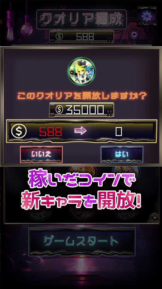 3、游戏中有12位可爱的二次元角色可以选择,玩家可以通过培养角色来让游戏难度降低。