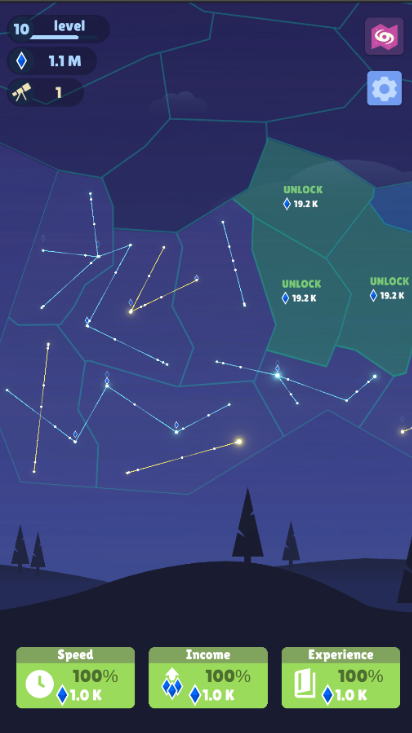 1. 点击屏幕上的星星,开始拖动手指进行连接。
