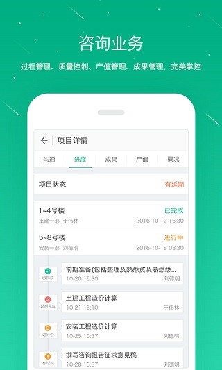 5. 项目管理:设置项目进度计划、成本控制目标和质量控制标准,实时监控项目执行情况。
