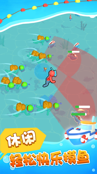 5、卡通的画风、清新的画面,用简单的玩法在线游戏,超多有趣的鱼类等你摸鱼,出售鱼赚到收益。