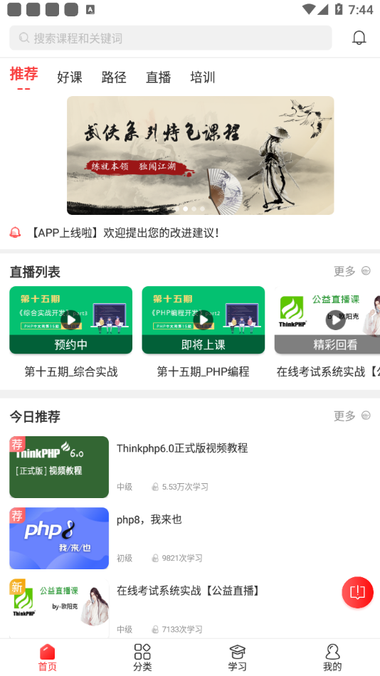 独家录制的武侠风系列课程,充满趣味,让学习不在枯燥;
