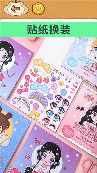 1、各种类型的贴纸配饰制作:玩家可以通过绘画、制作等操作方式来进行贴纸制作,制作各种类型的配饰品,过程中玩家可以完成换装任务和休闲任务来获取最新的贴纸奖励。