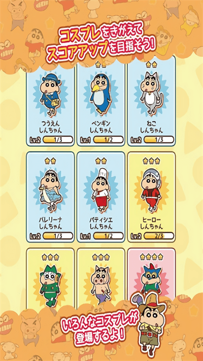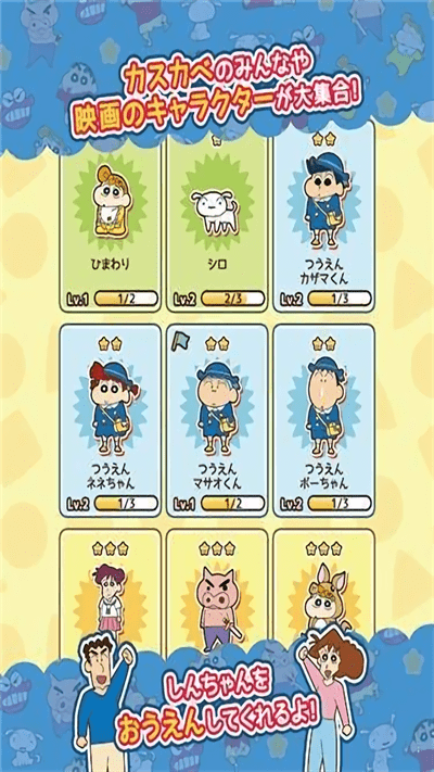 1.超过15个游戏关卡,活用每位角色的连携配合,拯救世界,创新的养成系统,培养出最强的春日部防卫队吧;