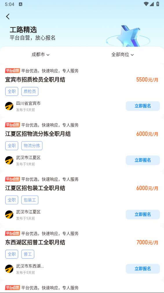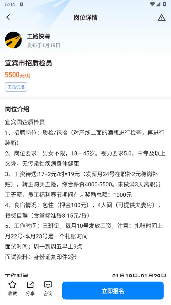 5. 高效招聘体验:工路快聘提供高效、便捷的招聘服务,让企业和个人用户都能快速找到合适的招聘或求职对象。
