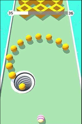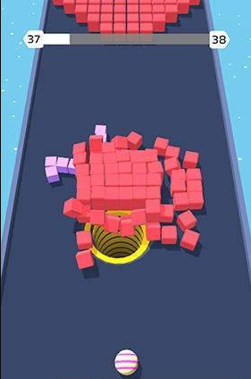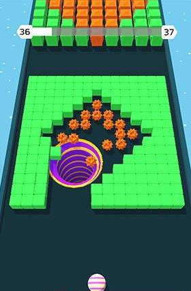 以桌子为场景,场景中有不同颜色的图案形成图案,用球打破它们,并吞下黑洞。