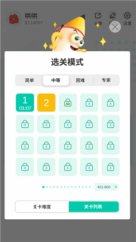 1、游戏采用了过关式的玩法,但是无需一关一关打,你可以直接选择难度以及想要的关卡。