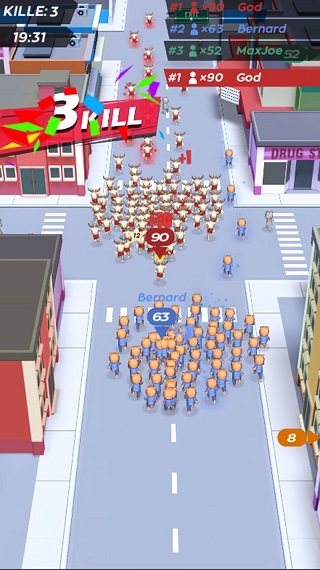 3、人多的可以吃掉人少的,在时间结束之前,壮大自己的队伍玩法很独特,收集人越多越可以收集别人的人。