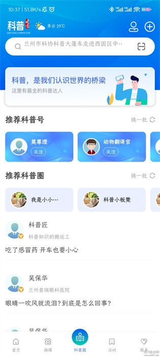 科普甘肃app围绕推进科普“三化工程”(科技资源科普化、科普宣传信息化、科普供给多元化),以“众创、严谨、共享”为宗旨,整合了甘肃省科普资源库数十万条内容以及“科普中国”的庞大科普数据,为用户提供智慧、便捷、活泼的科学技术传播平台。