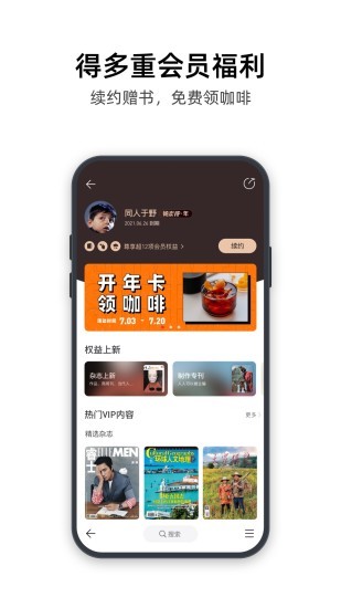 2. 会员特权:提供多种会期可选,会员可无限次畅读所有期刊杂志,享受更实惠的知识付费体验。支持买会员送朋友,赠送不同设计的礼品卡并附上赠言,增加社交互动性。