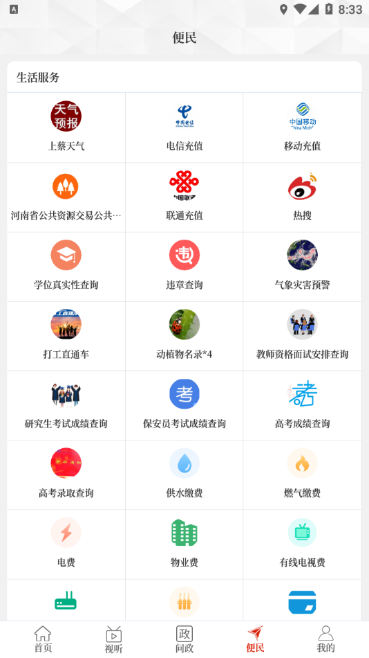 便民服务:用户可以自主选择服务查询办理,可以直接获取更多服务;