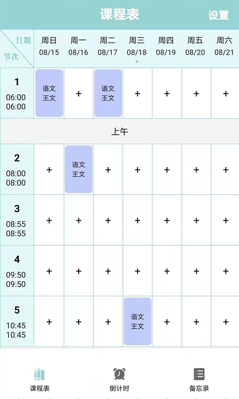 3、用户可以随意添加和删减课程项目,可自由设置每堂课的上课时间,不同的课程会以不同的颜色显示,方便学生一眼辨认