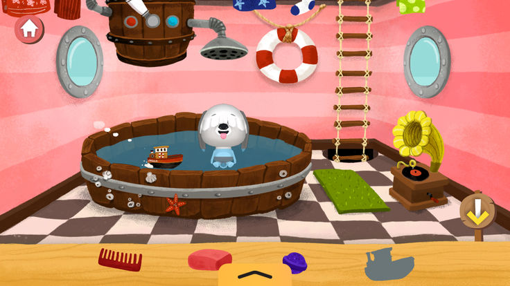 2、在杜迪舒适的灯塔里,有一个带巨大浴缸的浴室在等着你。给杜迪抹肥皂和看肥皂泡全部破灭,真是太有趣了。