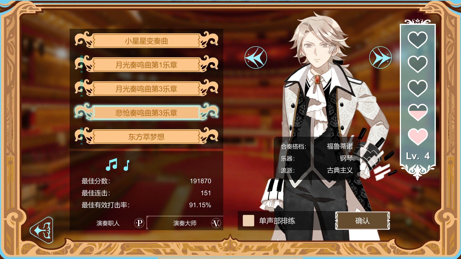 4. 完成曲目后,根据表现获得评分和奖励。