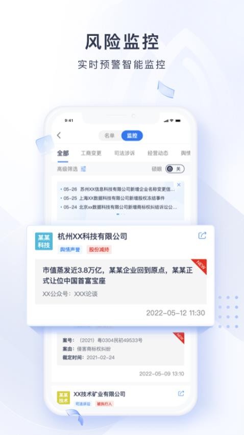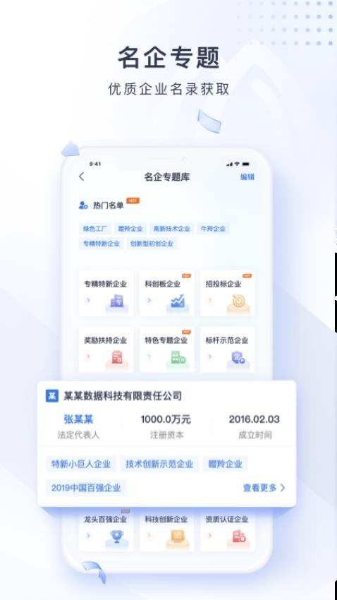 为金融从业者打造的企业大数据展业助手。运用先进大数据技术持续关注各类互联网资讯、政府机构公告、新媒体的新发布,利用自然语言处理技术、舆情预警策略体系和标签事件体系,对企业进行深度挖掘分析,提炼出重要事件、强关联资讯,风险信号,新鲜及时,确保又快又准地为你探寻到优质的企业,并拆解企业信息为你提供业务线索。