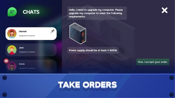 电脑制造商2是一款支持中文语言的模拟养成类游戏,其玩法十分新颖有趣,玩家将在这里扮演一名电脑公司的助手,你将负责每位客户的订单,这里每个客户的需求都不同,有的需要升级cpu、有的需要升级显卡等等,玩家需要认真对待每一笔的订单,这些订单的完成可以帮助玩家获得更多相关的报酬,以此来生产出性能更高的电脑,使得你的电脑制造厂更加的繁荣。