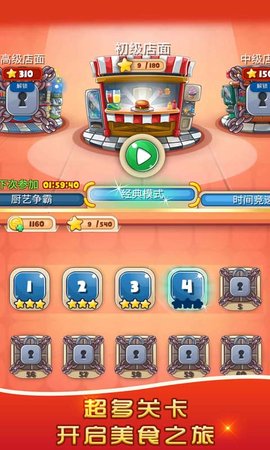 4. 餐厅升级:随着餐厅的经营,玩家可以不断提升餐厅的等级,解锁更多的菜肴和装饰物。升级需要满足一定的条件,如达到一定的营业额、获得一定的好评度等。