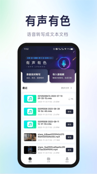 有声有色是一款高效的语音转文字软件,通过先进的语音识别技术,能够将用户的语音内容快速、准确地转换成文字形式,适用于会议记录、学习笔记、采访整理等多种场景。