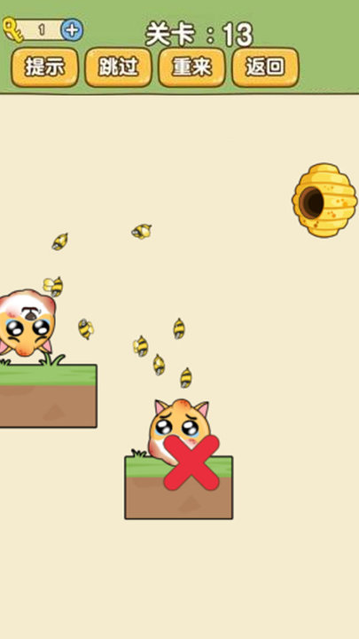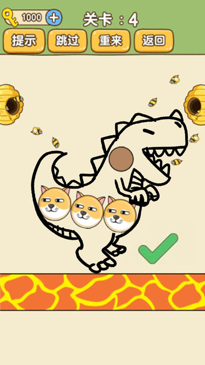 2.通过画线将菜狗好好的保护起来,让它不在被蜜蜂叮成肿狗头!快来拯救被蜜蜂窝困住的菜狗头吧!